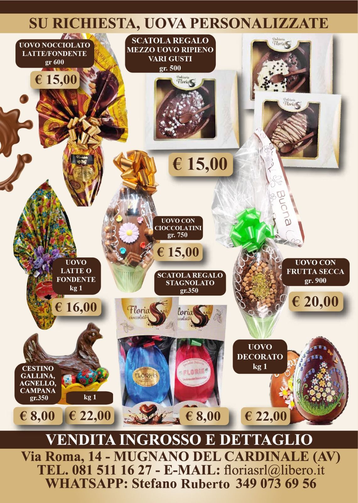 I nostri dolci rappresentano l’anima del territorio campano: ricchi di gusto, passione e identità. L’attenzione al cliente e la possibilità di personalizzare ogni creazione rendono Dolciaria Florias la scelta ideale per chi vuole regalare o regalarsi qualcosa di davvero speciale.